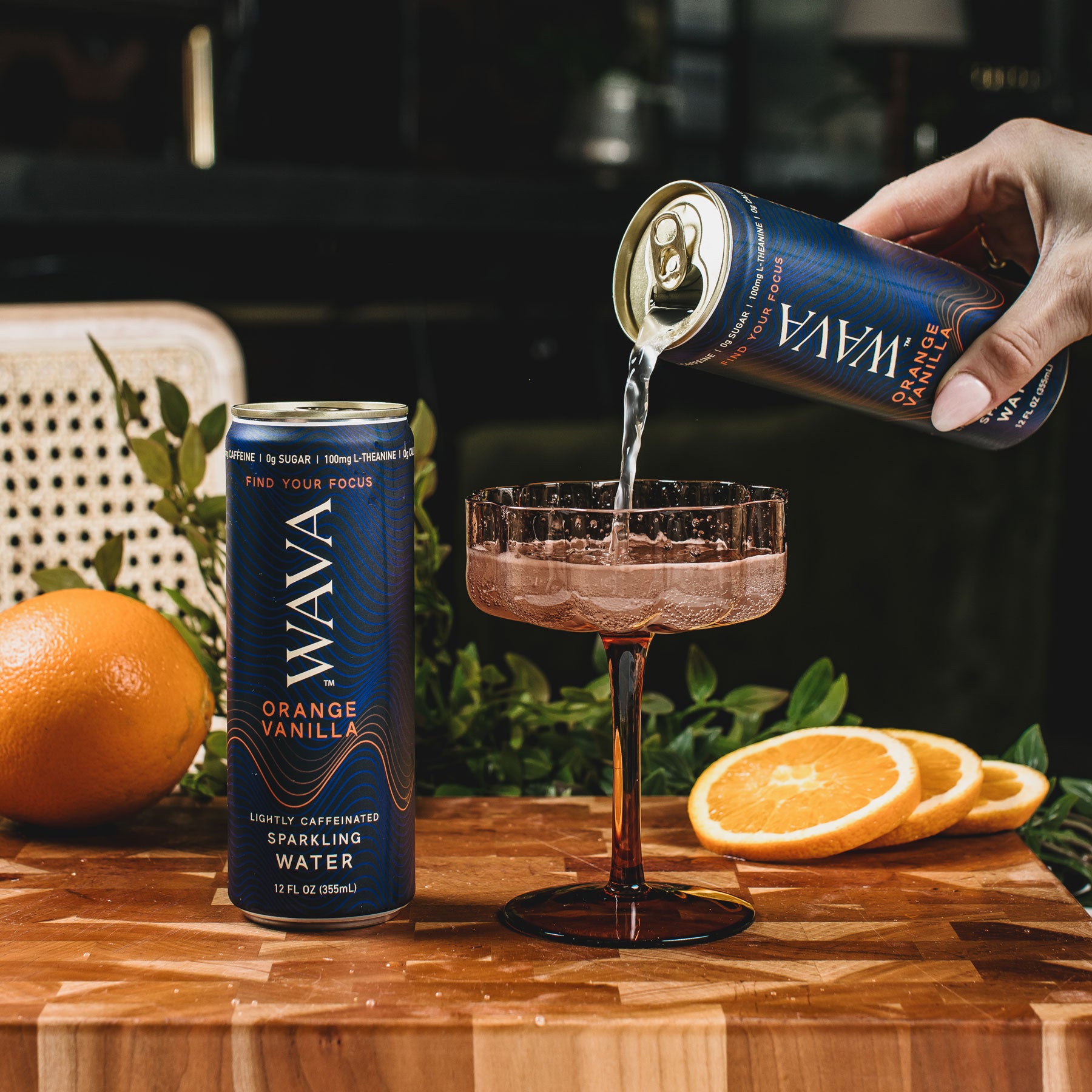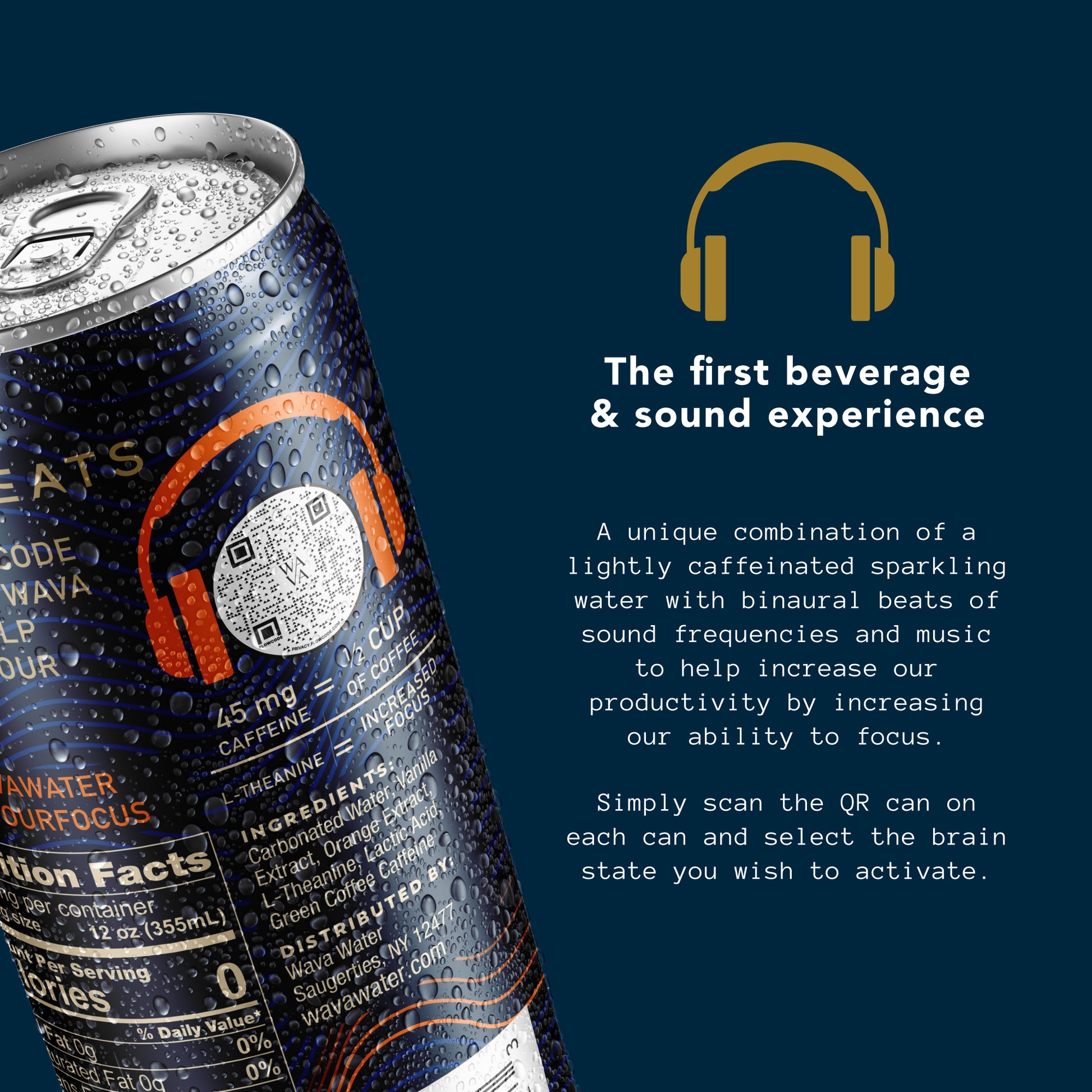 Lightly caffeinated sparkling water. Drink WAVA Water while listening to WAVA Beats to find your focus.