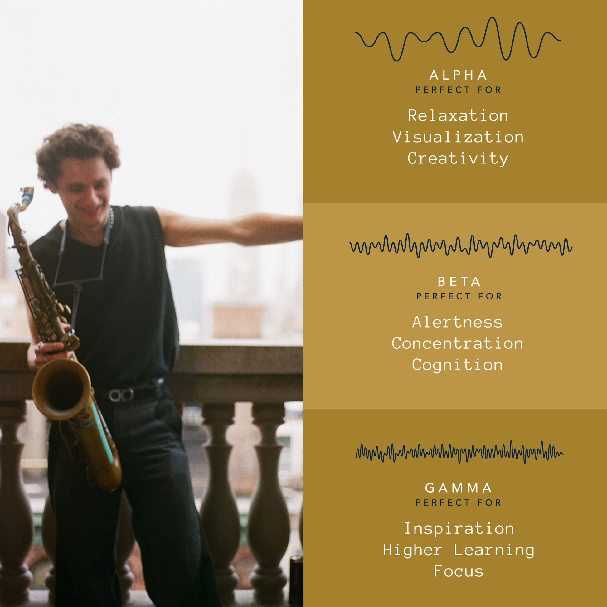 The first beverage and sound experience that uses a lightly caffeinated sparkling water and binaural beats of sound frequencies and music to help increase our creativity, productivity, and focus.