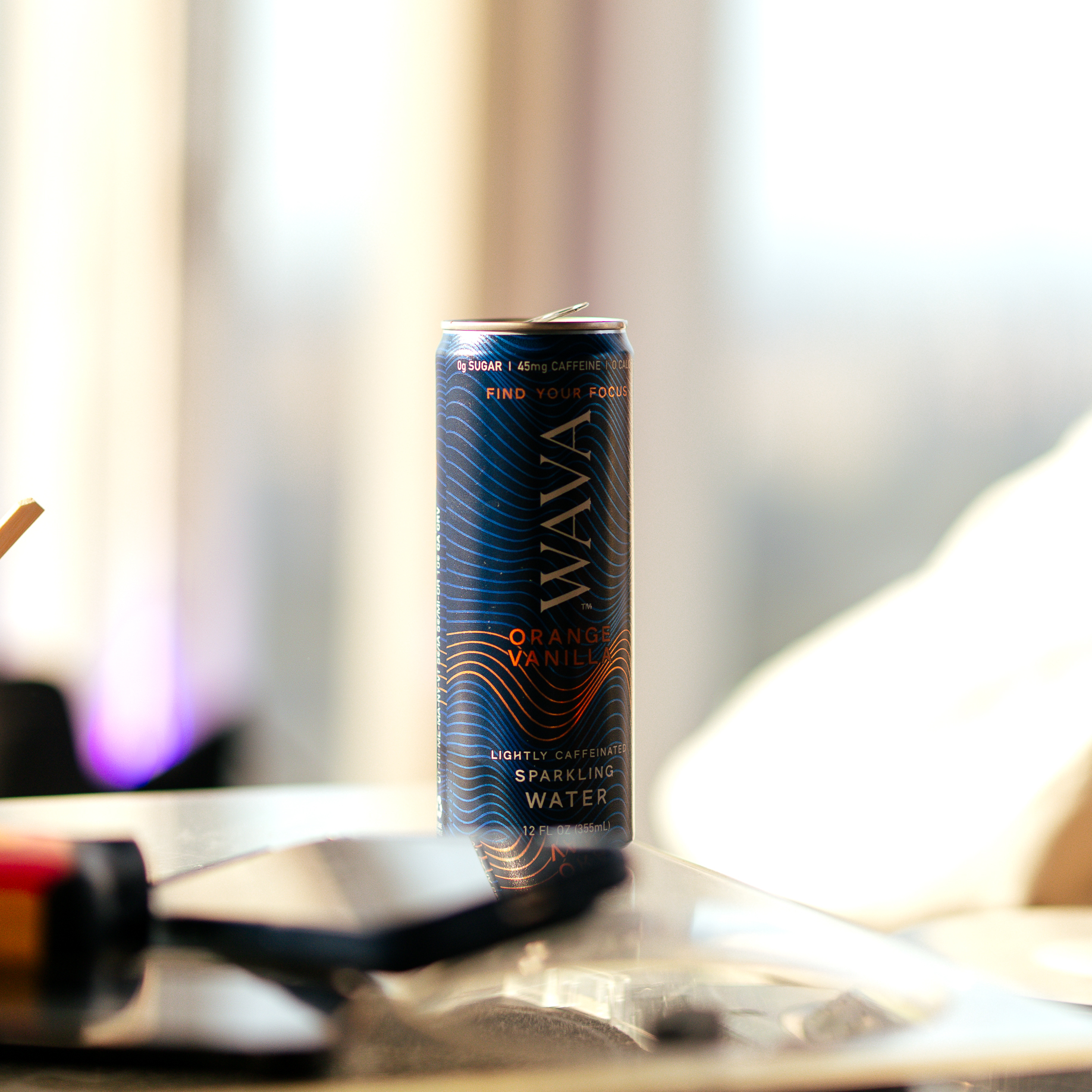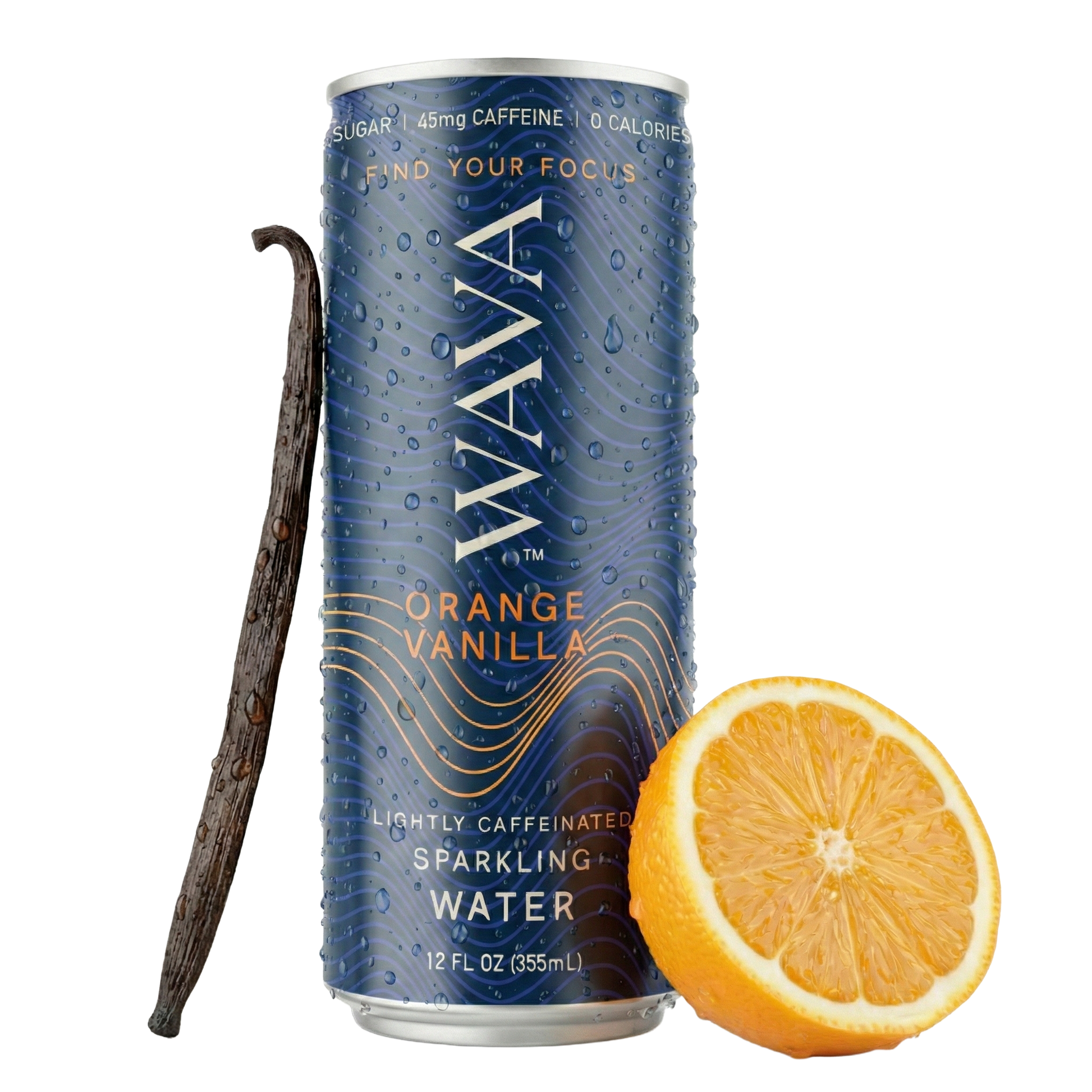 Natural orange and vanilla flavor lightly caffeinated sparkling water. Drink WAVA Water while listening to WAVA Beats to find your focus, activate your calm or stimulate your creativity.